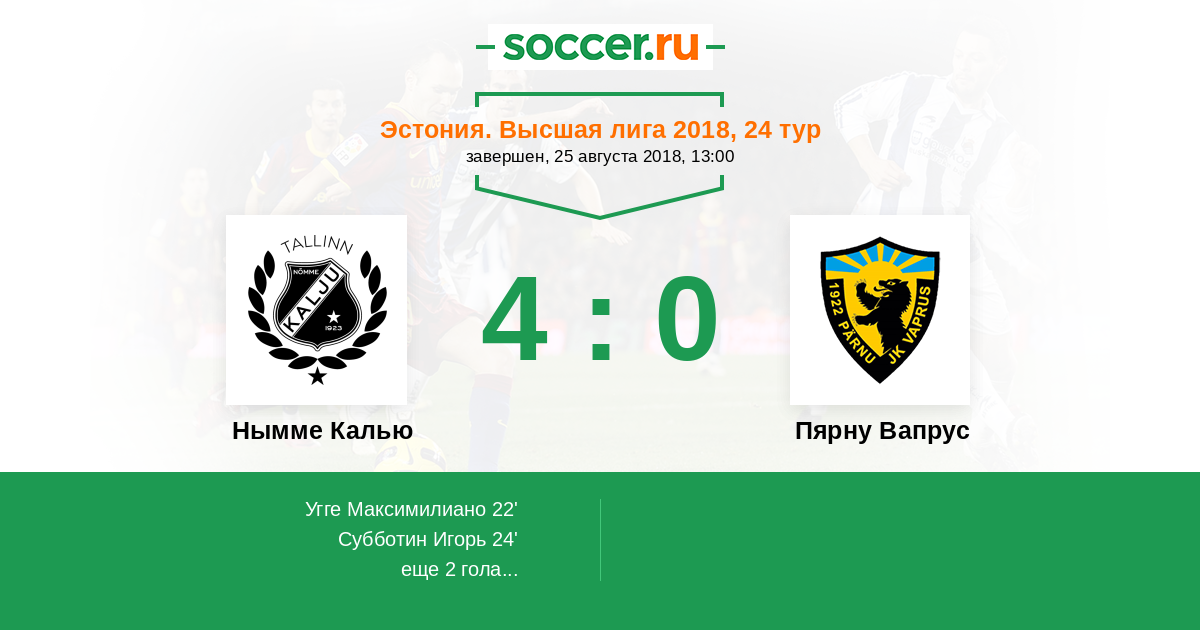 Нымме Калью - Пярну Вапрус: обзор матча 25 августа 2018