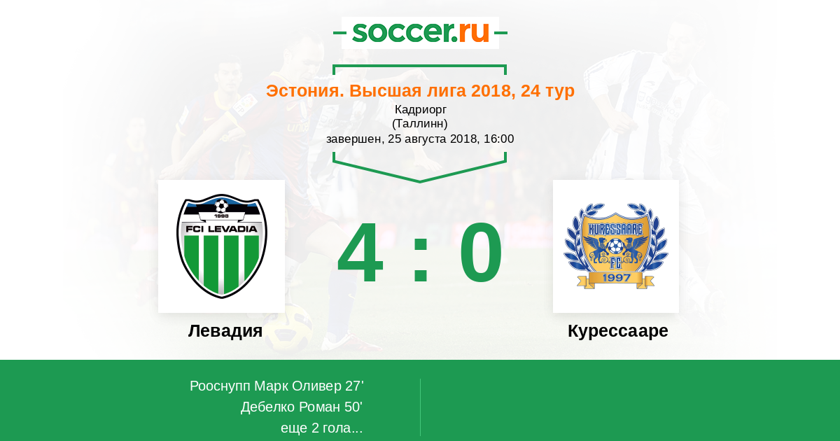 Левадия - Курессааре: обзор матча 25 августа 2018