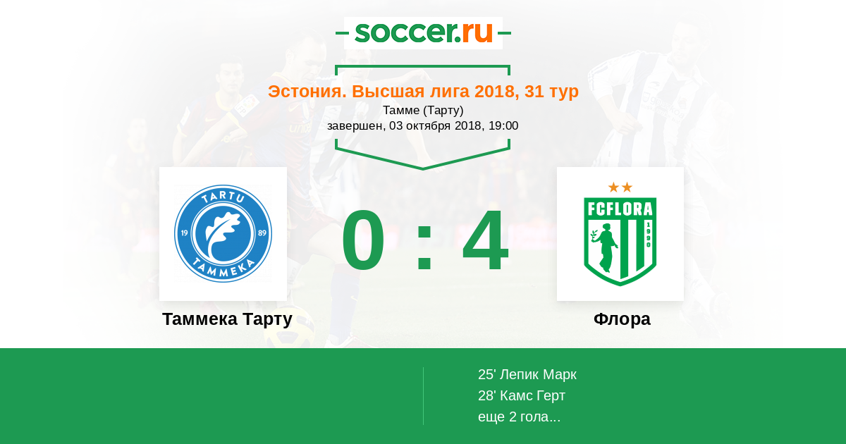 Таммека Тарту - Флора: обзор матча 3 октября 2018