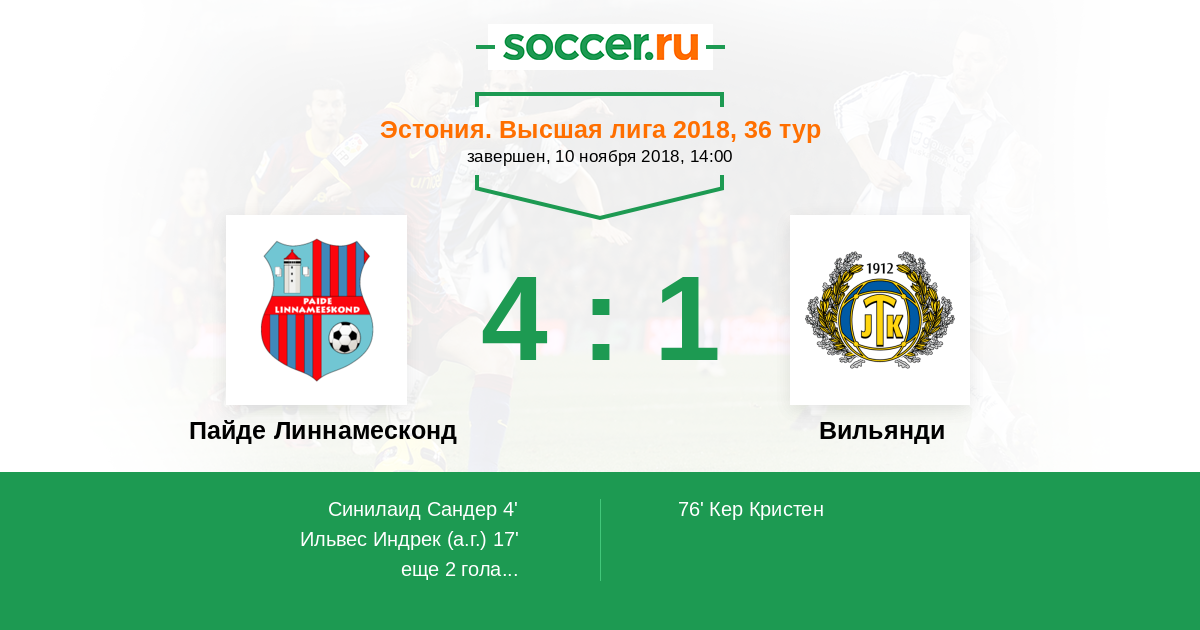 Пайде Линнамесконд - Вильянди: обзор матча 10 ноября 2018