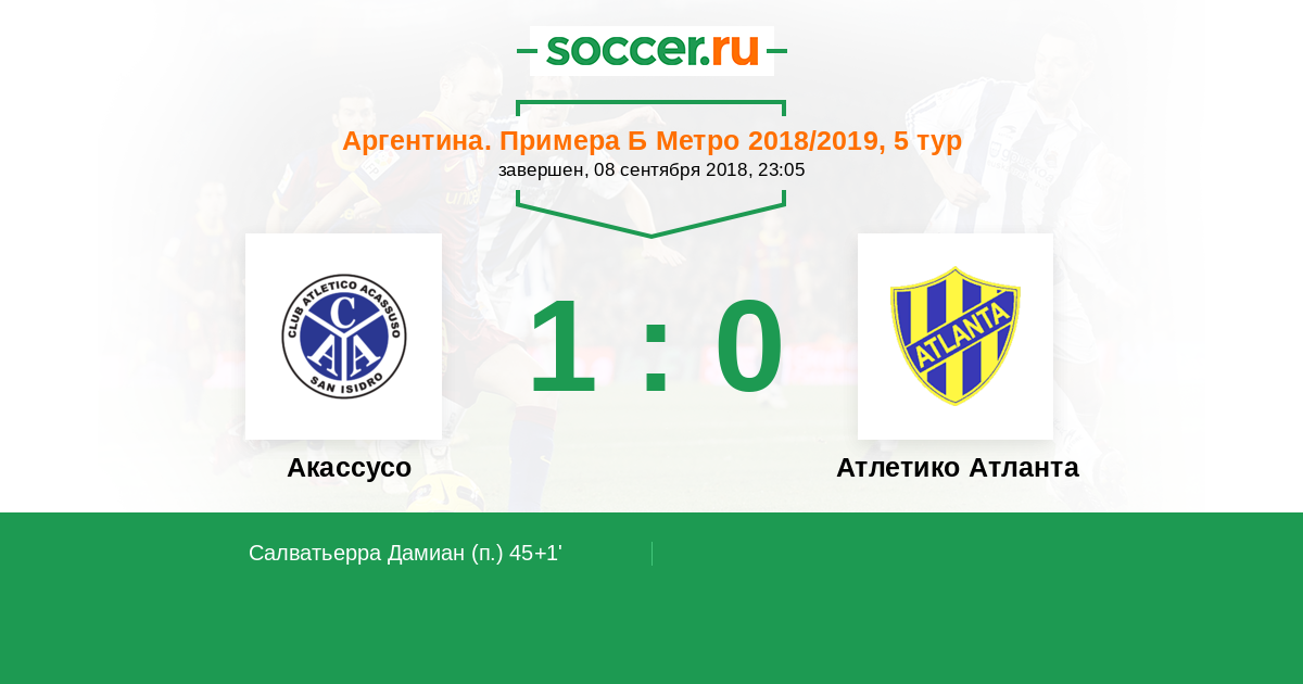 Акассусо - Атлетико Атланта: обзор матча 8 сентября 2018