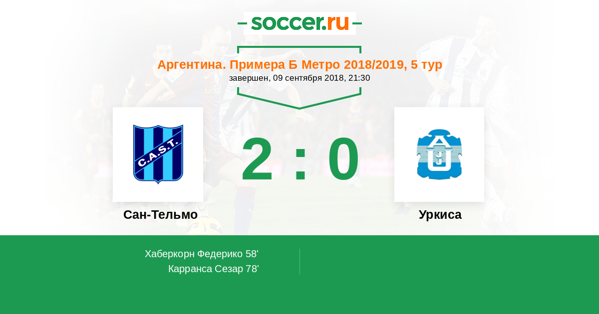 Сан-Тельмо - Уркиса: обзор матча 9 сентября 2018