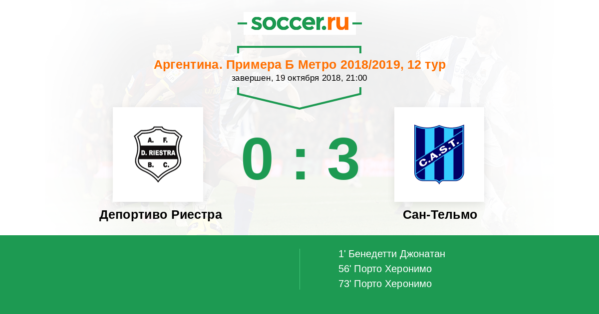 Депортиво Риестра - Сан-Тельмо: обзор матча 19 октября 2018