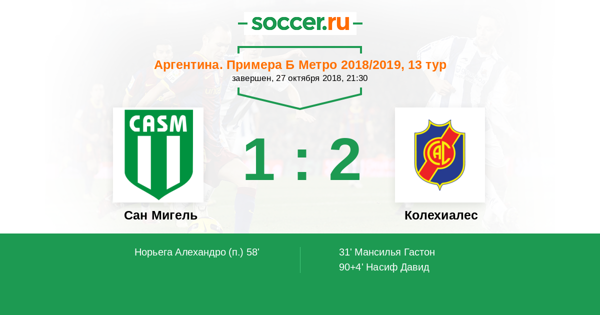 Сан Мигель - Колехиалес: обзор матча 27 октября 2018