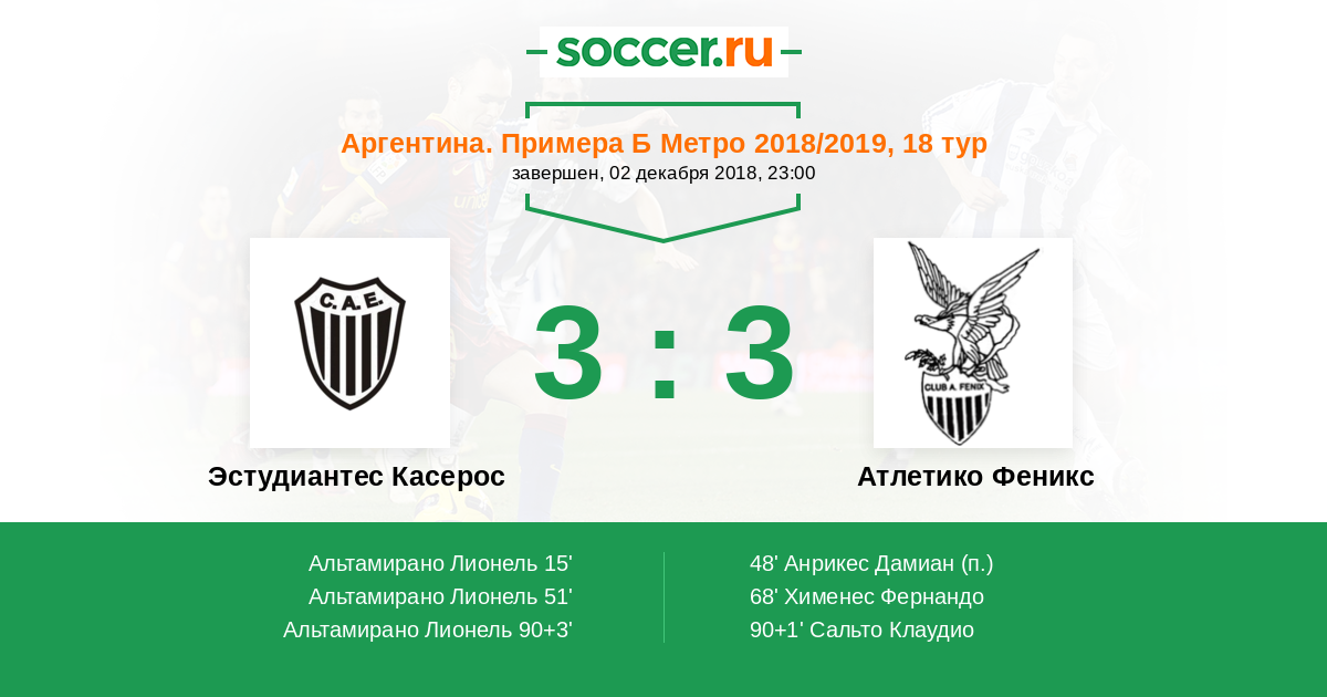 Эстудиантес Касерос - Атлетико Феникс: обзор матча 2 декабря 2018