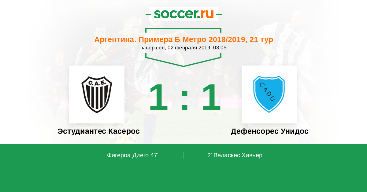 Эстудиантес Касерос - Дефенсорес Унидос: обзор матча 2 февраля 2019