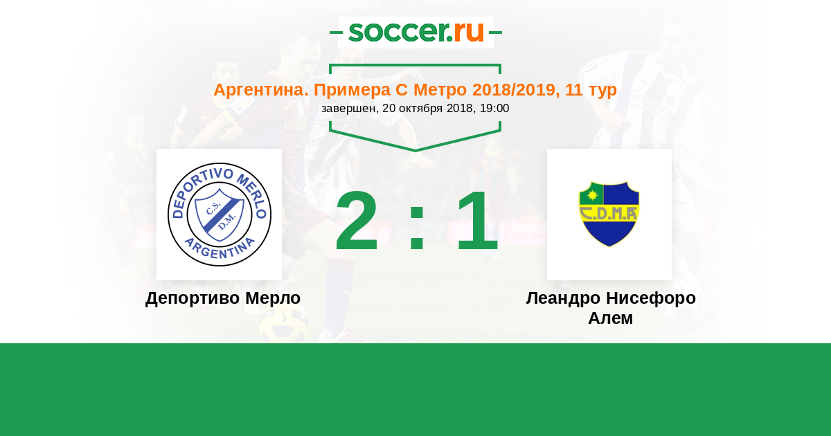 Депортиво Мерло - Леандро Нисефоро Алем: обзор матча 20 октября 2018