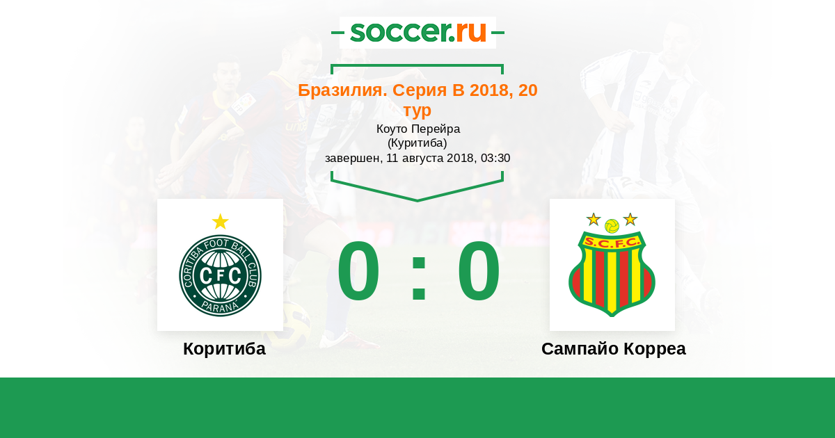 Коритиба - Сампайо Корреа: обзор матча 11 августа 2018
