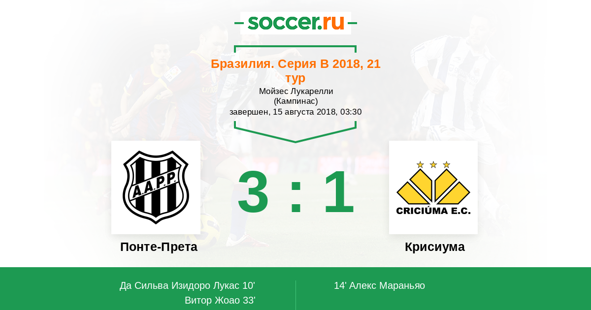 Понте-Прета - Крисиума: обзор матча 15 августа 2018