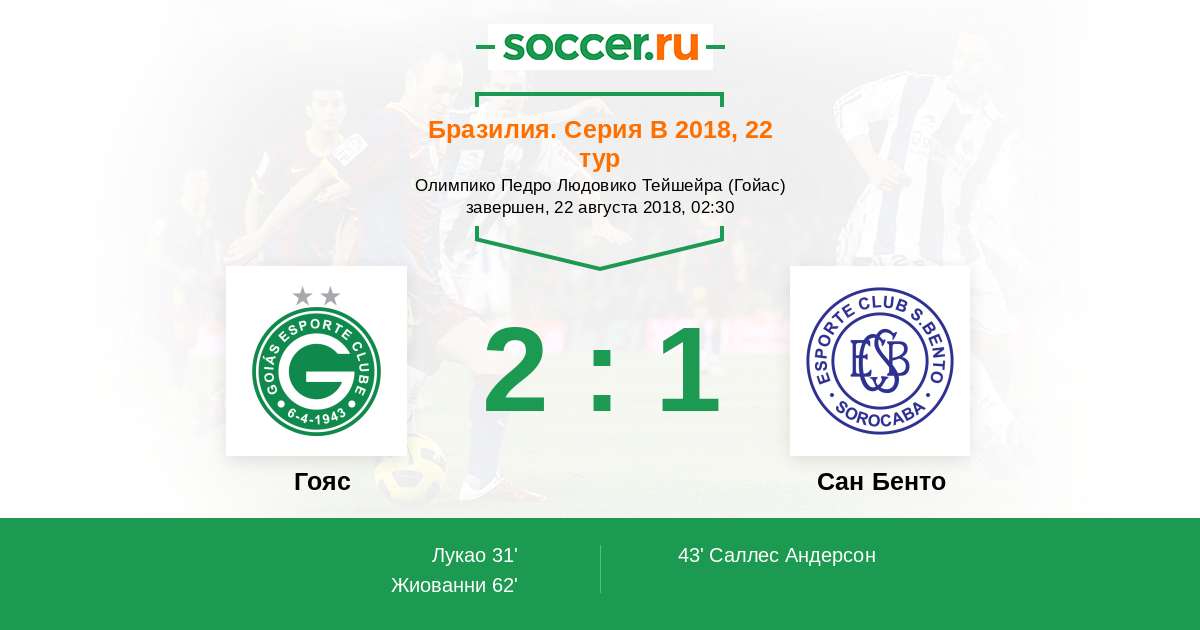 Гояс - Сан Бенто: обзор матча 22 августа 2018