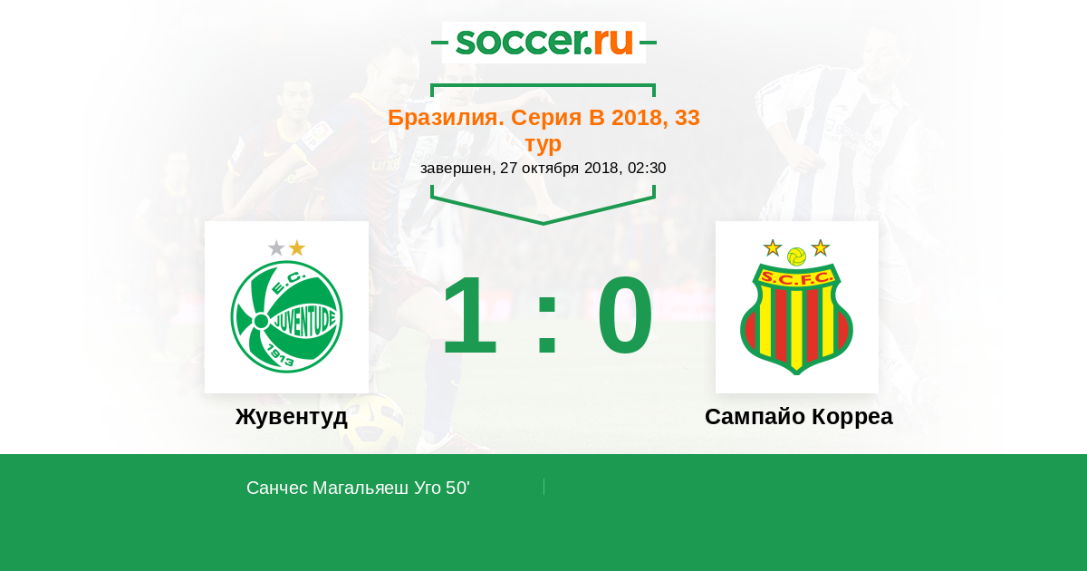 Жувентуд - Сампайо Корреа: обзор матча 27 октября 2018