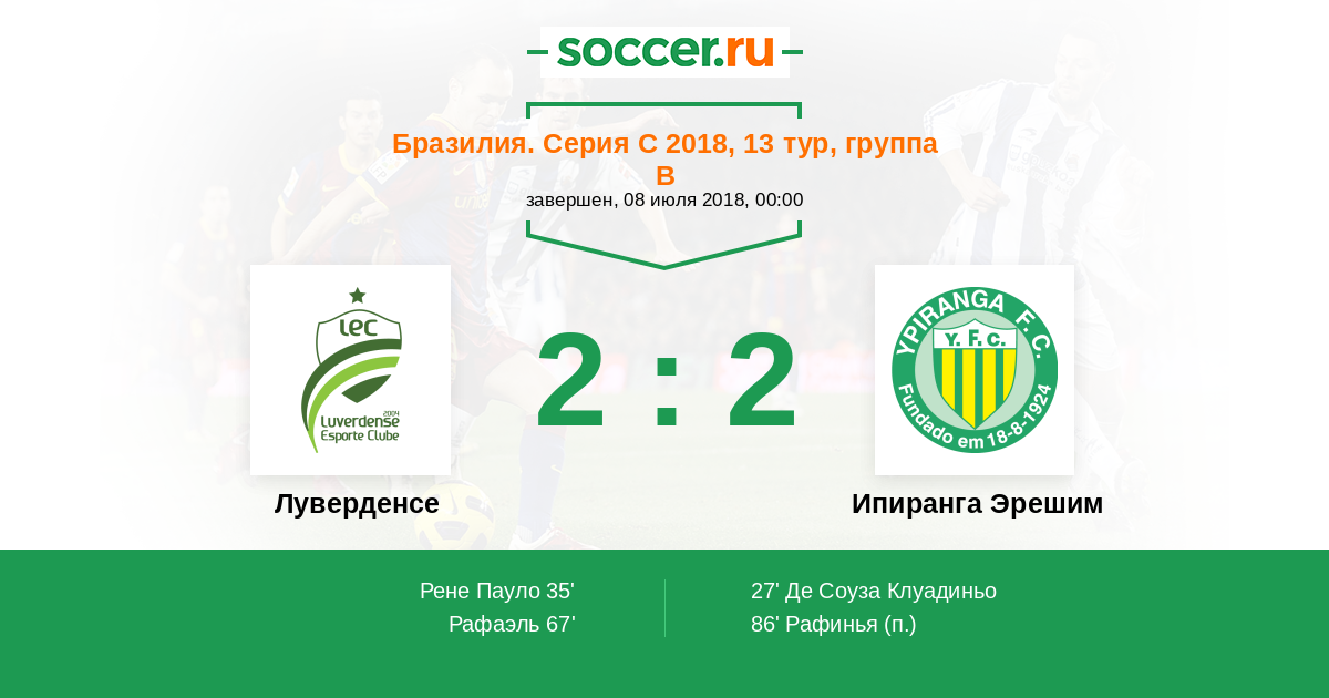 Луверденсе - Ипиранга Эрешим: обзор матча 8 июля 2018