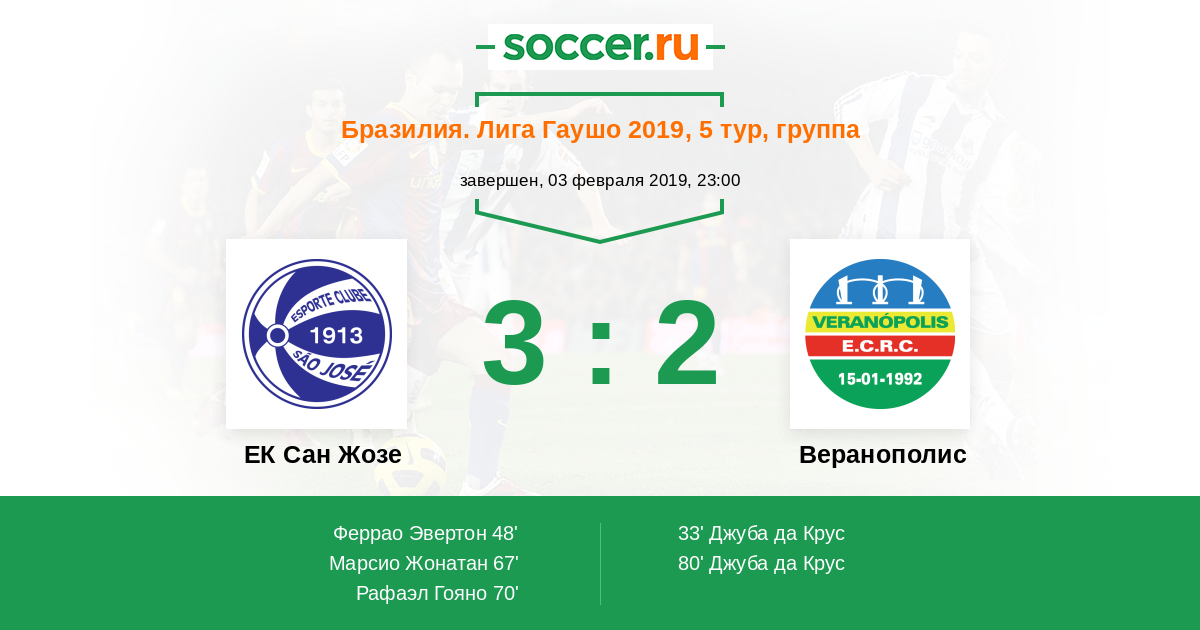 ЕК Сан Жозе - Веранополис: обзор матча 3 февраля 2019