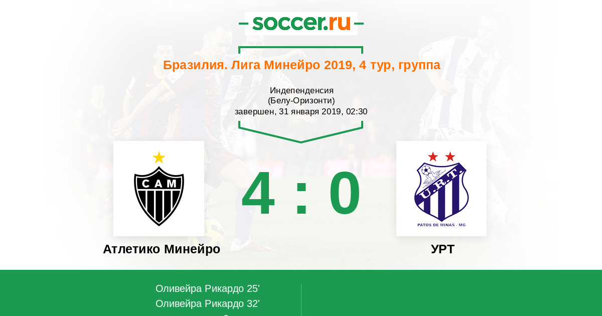 Атлетико Минейро - УРТ: обзор матча 31 января 2019
