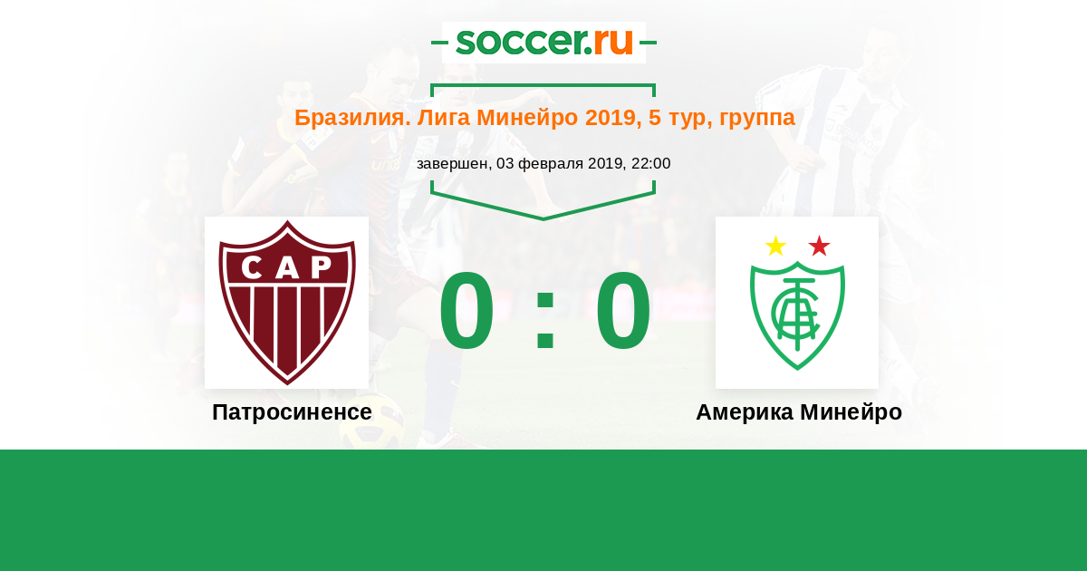 Патросиненсе - Америка Минейро: обзор матча 3 февраля 2019