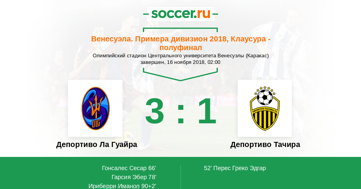 Депортиво Ла Гуайра - Депортиво Тачира: обзор матча 16 ноября 2018