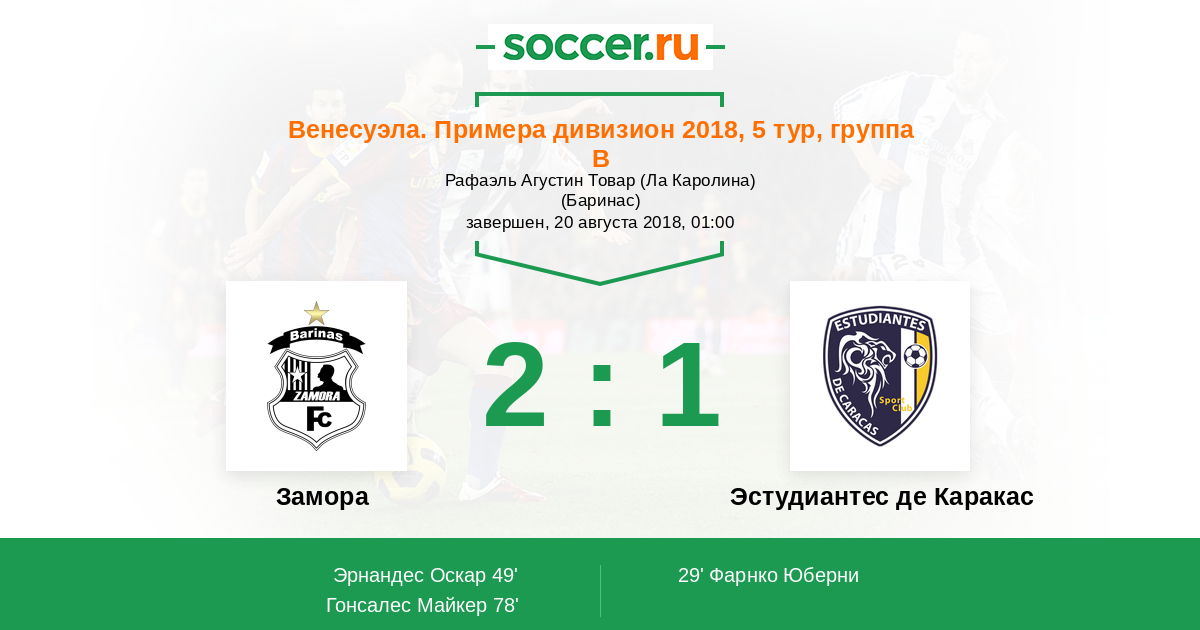 Замора - Эстудиантес де Каракас: обзор матча 20 августа 2018