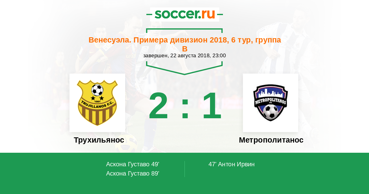 Трухильянос - Метрополитанос: обзор матча 22 августа 2018
