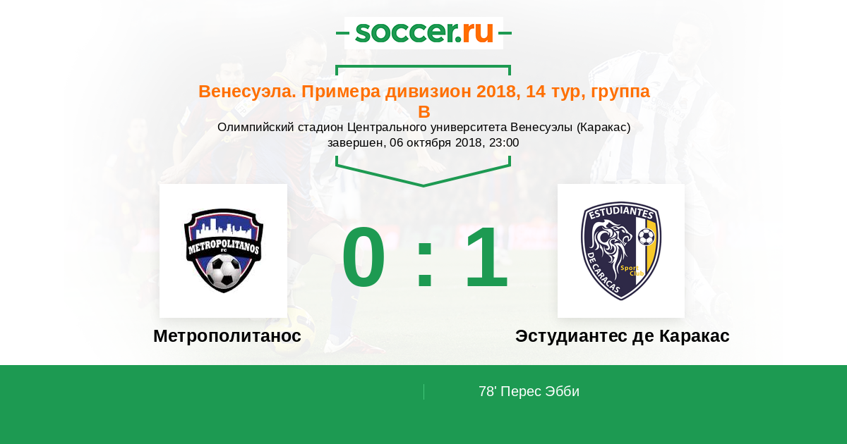 Метрополитанос - Эстудиантес де Каракас: обзор матча 6 октября 2018