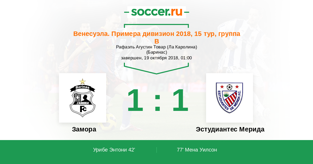 Замора - Эстудиантес Мерида: обзор матча 19 октября 2018