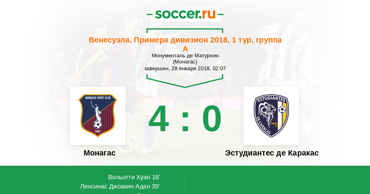 Монагас - Эстудиантес де Каракас: обзор матча 28 января 2018