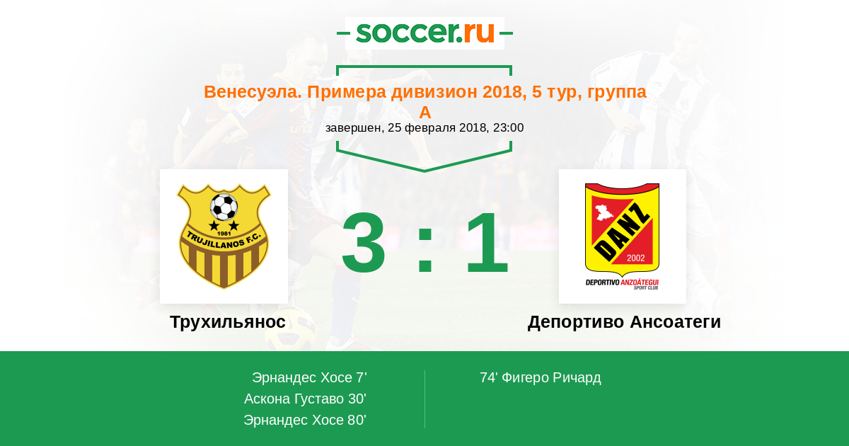 Трухильянос - Депортиво Ансоатеги: обзор матча 25 февраля 2018