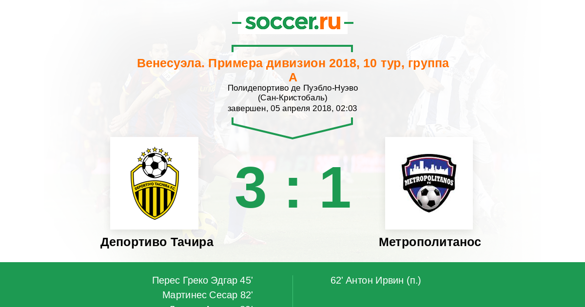 Депортиво Тачира - Метрополитанос: обзор матча 5 апреля 2018