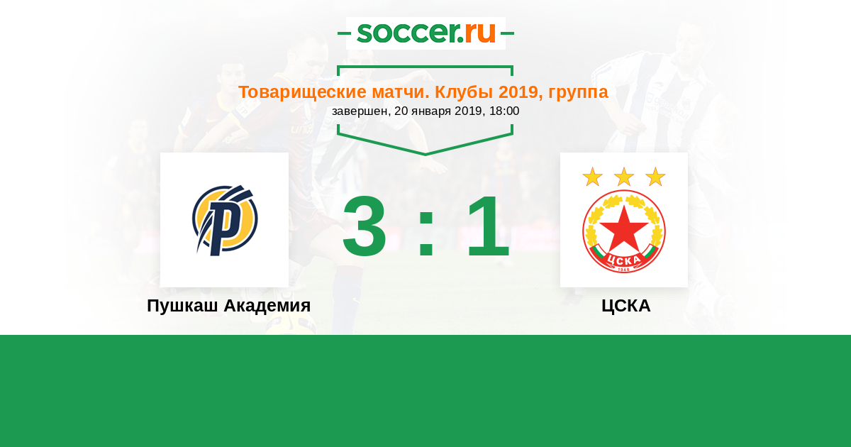 Пушкаш Академия - ЦСКА: обзор матча 20 января 2019