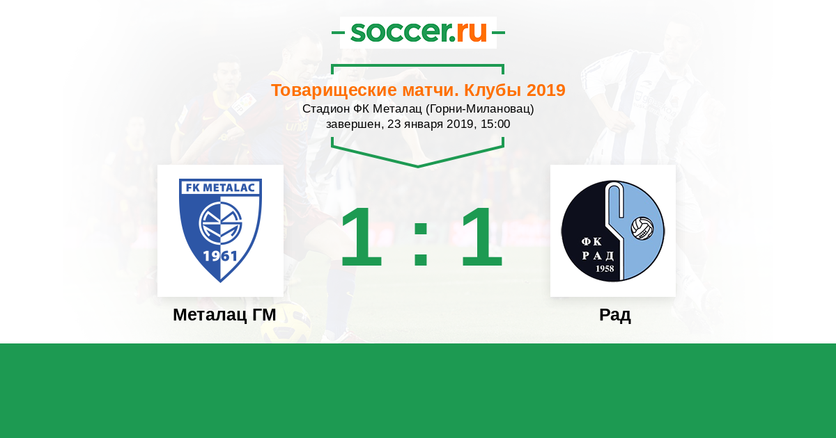 Металац ГМ - Рад: обзор матча 23 января 2019