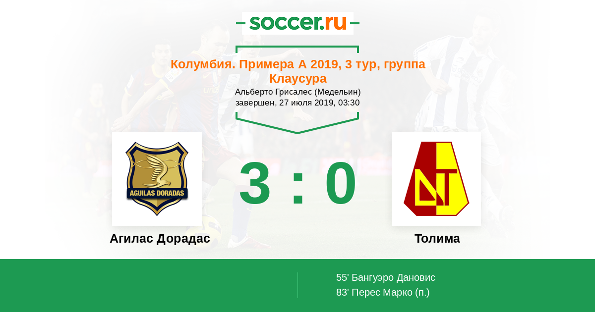 Агилас Дорадас - Толима: обзор матча 27 июля 2019
