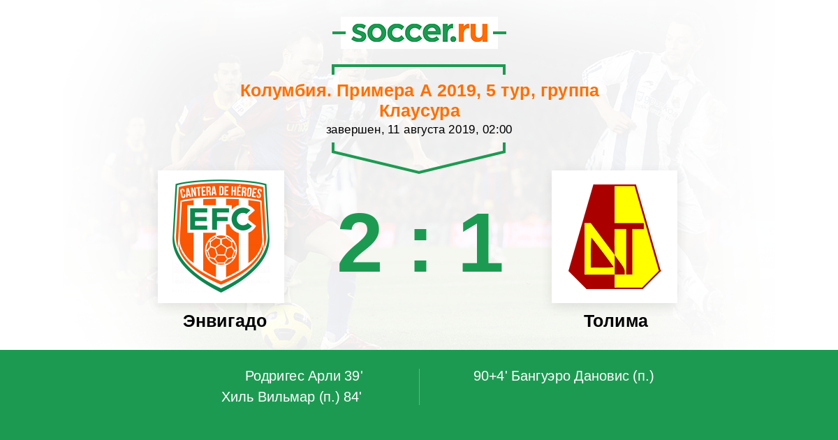 Энвигадо - Толима: обзор матча 11 августа 2019