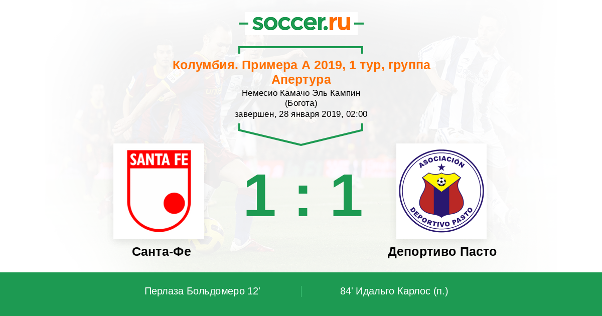 Санта-Фе - Депортиво Пасто: обзор матча 28 января 2019
