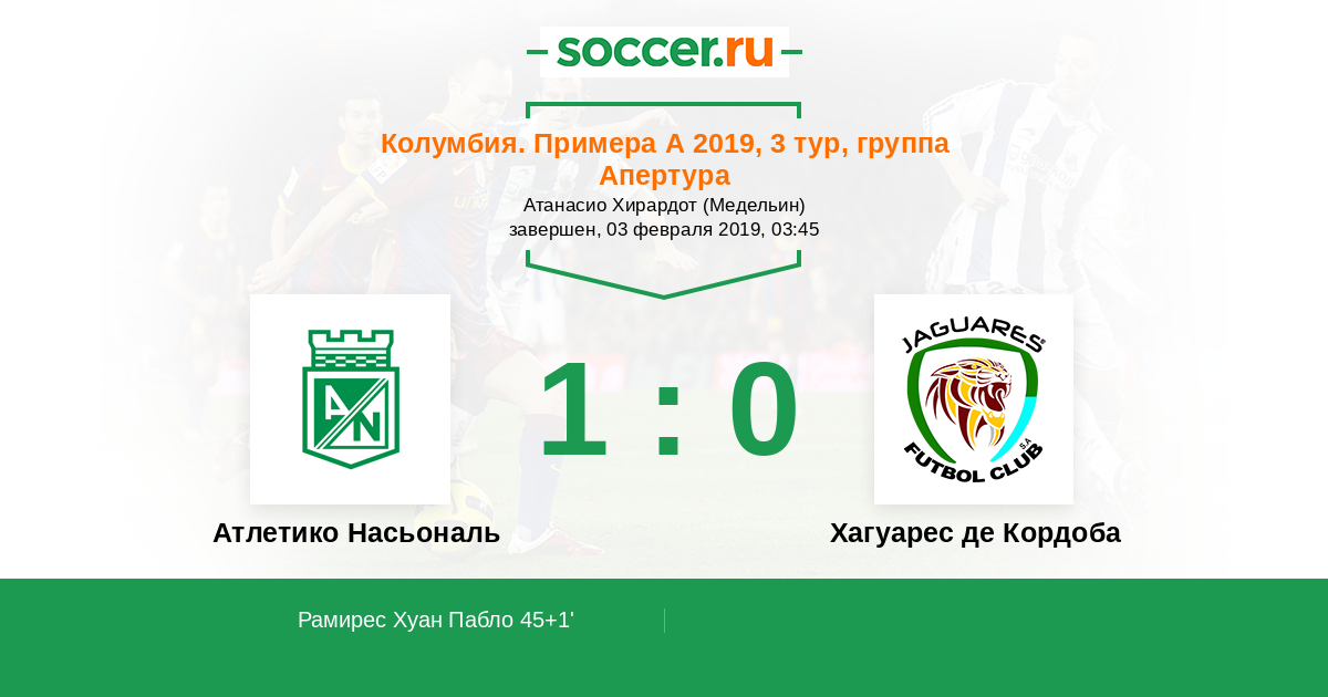 Атлетико Насьональ - Хагуарес де Кордоба: обзор матча 3 февраля 2019
