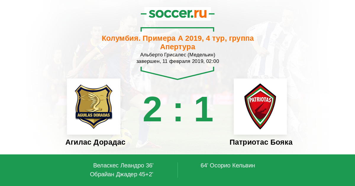 Агилас Дорадас - Патриотас Бояка: обзор матча 11 февраля 2019