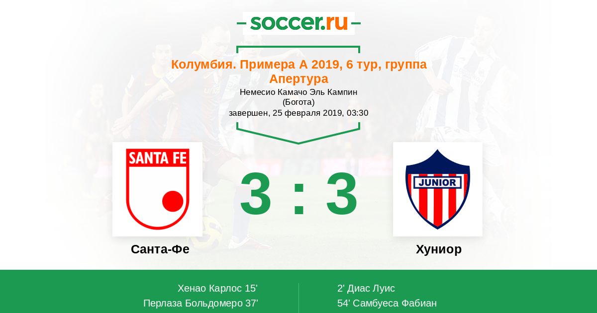 Санта-Фе - Хуниор: обзор матча 25 февраля 2019