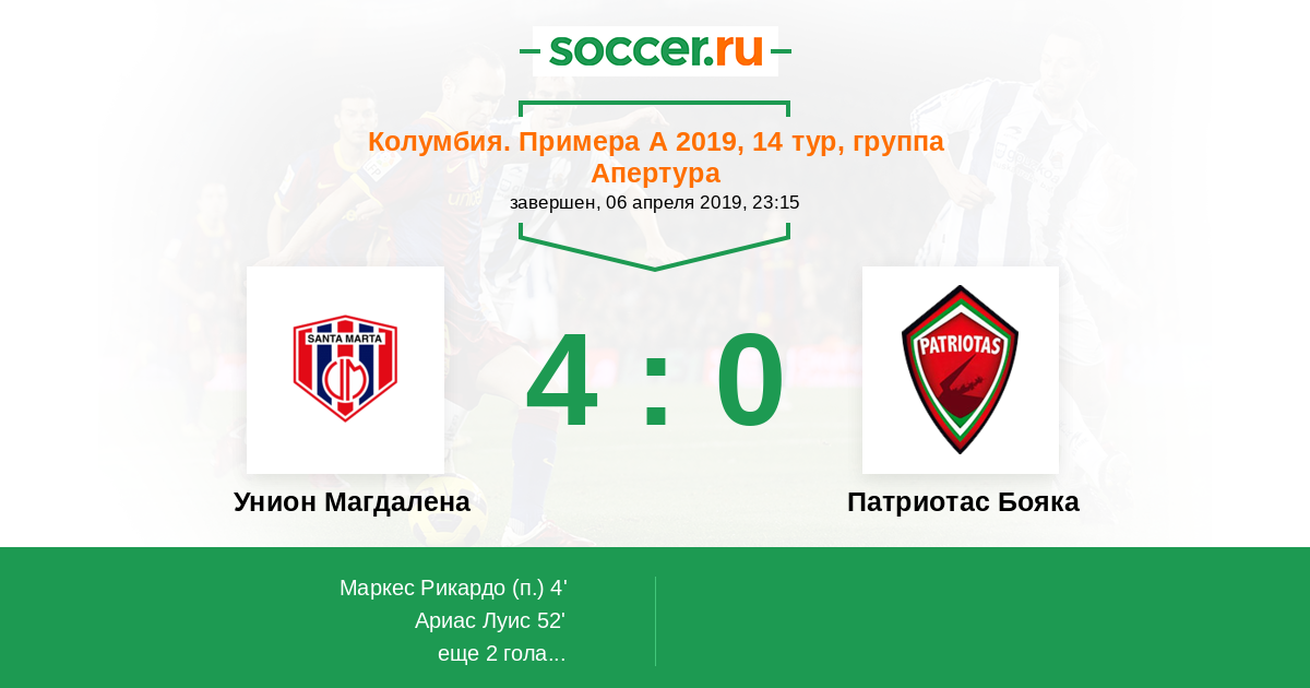 Унион Магдалена - Патриотас Бояка: обзор матча 6 апреля 2019