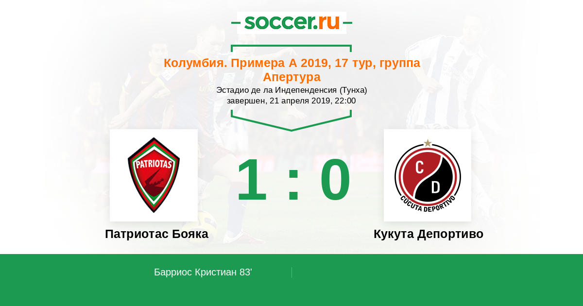 Патриотас Бояка - Кукута Депортиво: обзор матча 21 апреля 2019