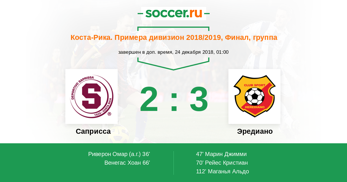 Саприсса - Эредиано: обзор матча 24 декабря 2018