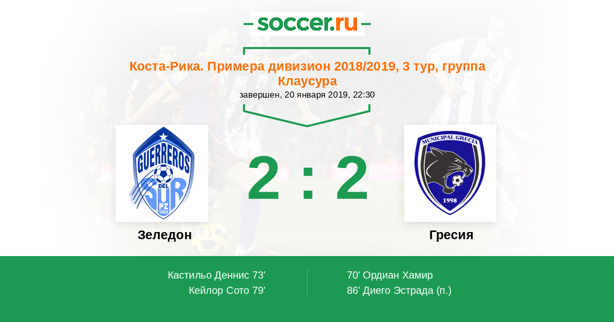 Зеледон - Гресия: обзор матча 20 января 2019