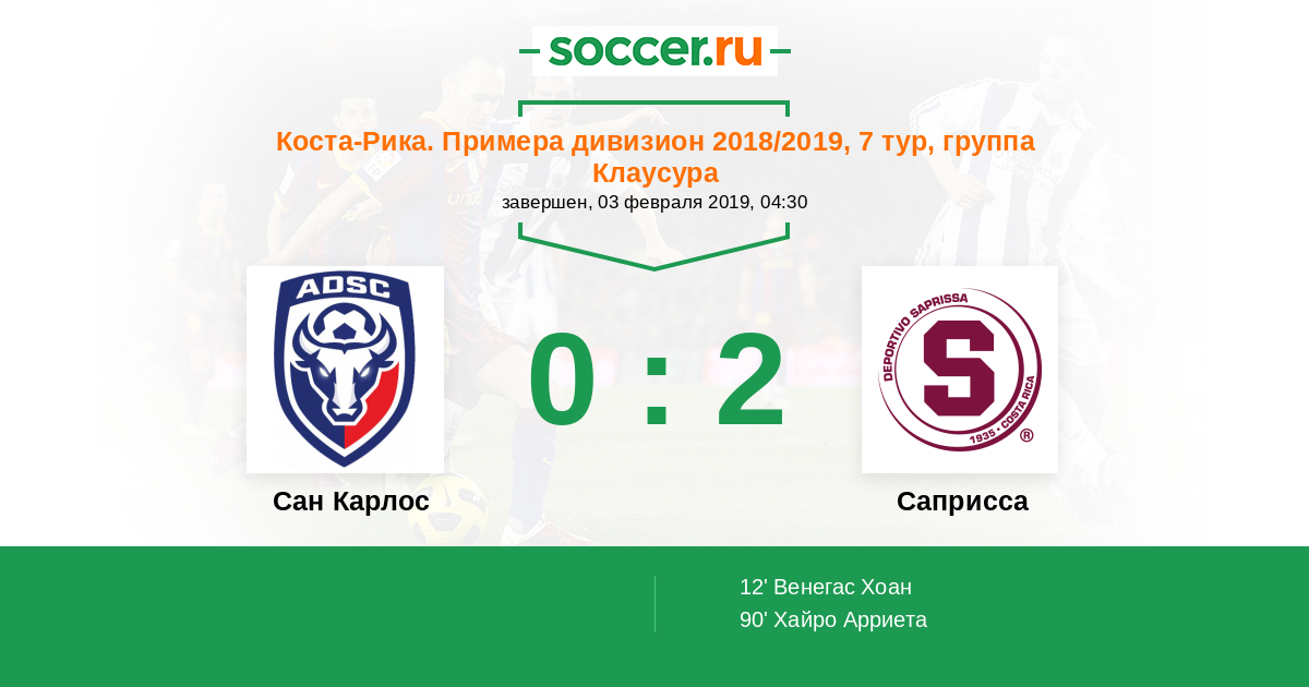 Сан Карлос - Саприсса: обзор матча 3 февраля 2019