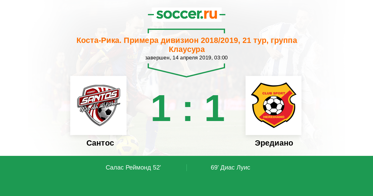 Сантос - Эредиано: обзор матча 14 апреля 2019