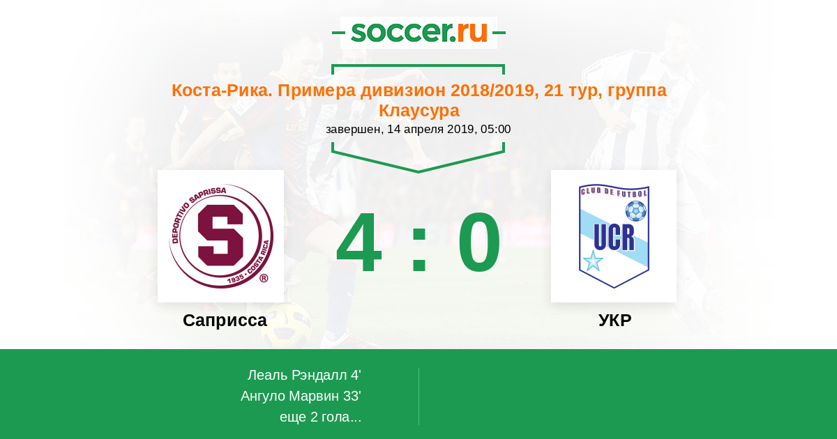 Саприсса - УКР: обзор матча 14 апреля 2019