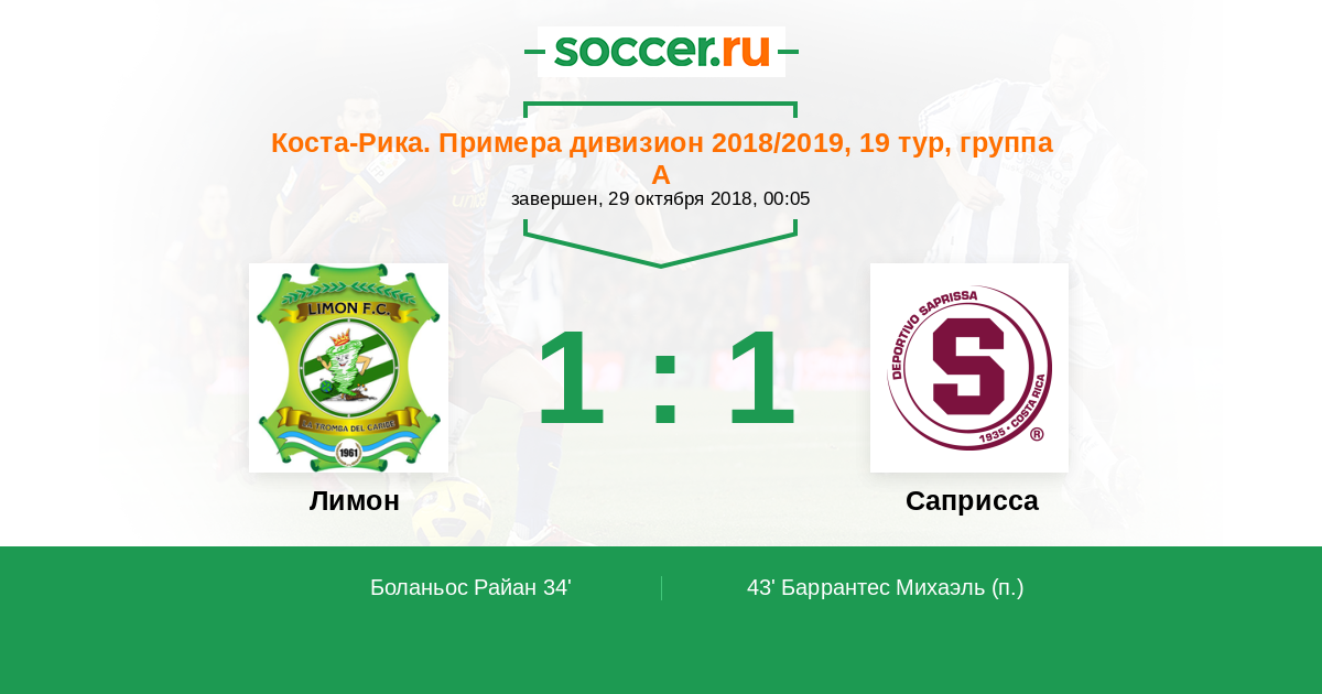 Лимон - Саприсса: обзор матча 29 октября 2018