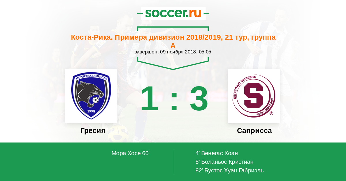 Гресия - Саприсса: обзор матча 9 ноября 2018