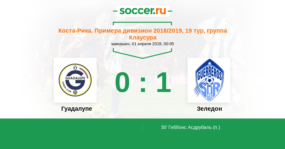 Гуадалупе - Зеледон: обзор матча 1 апреля 2019