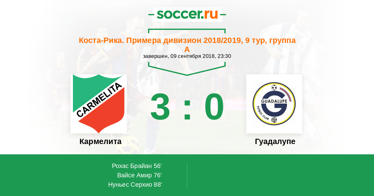 Кармелита - Гуадалупе: обзор матча 9 сентября 2018