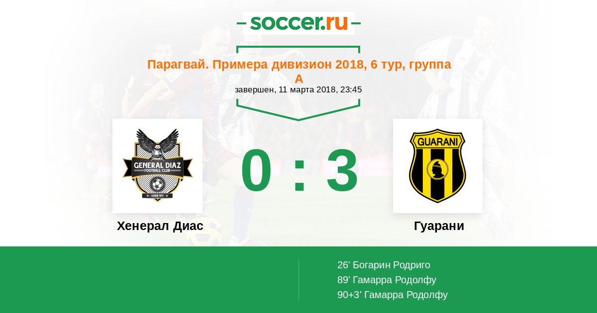 Хенерал Диас - Гуарани: обзор матча 11 марта 2018