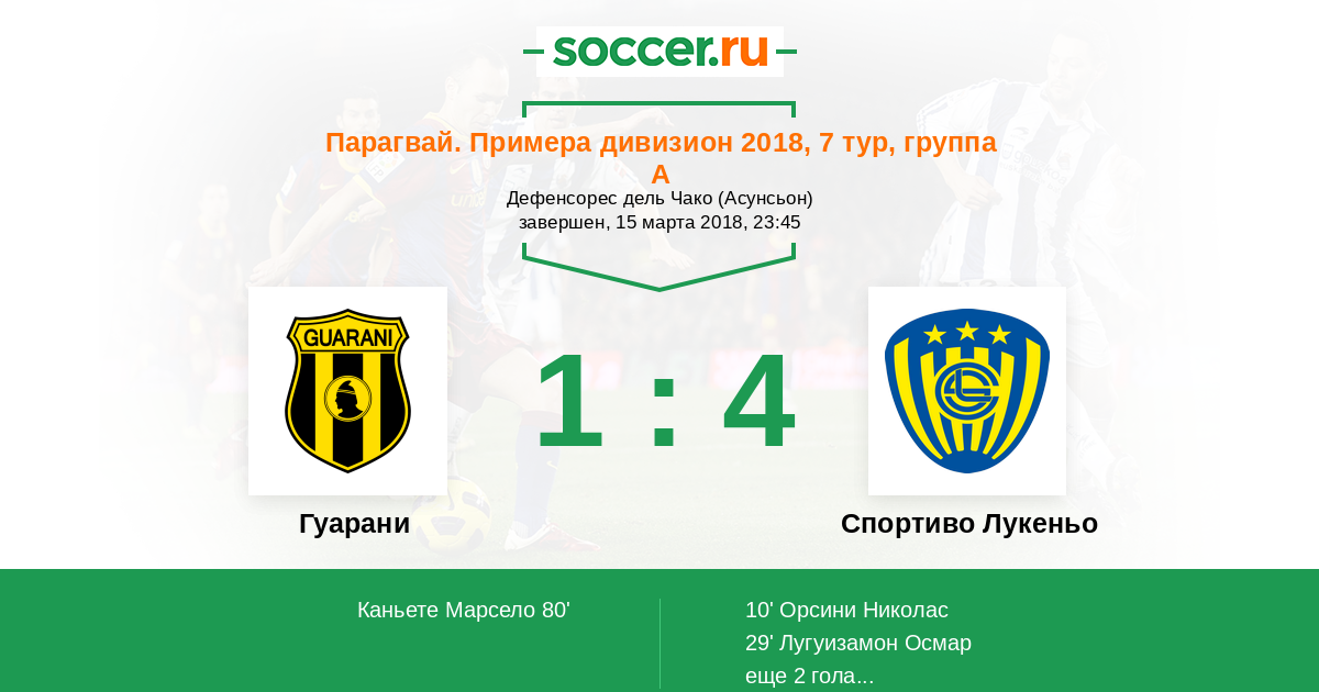 Гуарани - Спортиво Лукеньо: обзор матча 15 марта 2018