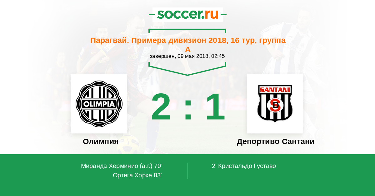 Олимпия - Депортиво Сантани: обзор матча 9 мая 2018