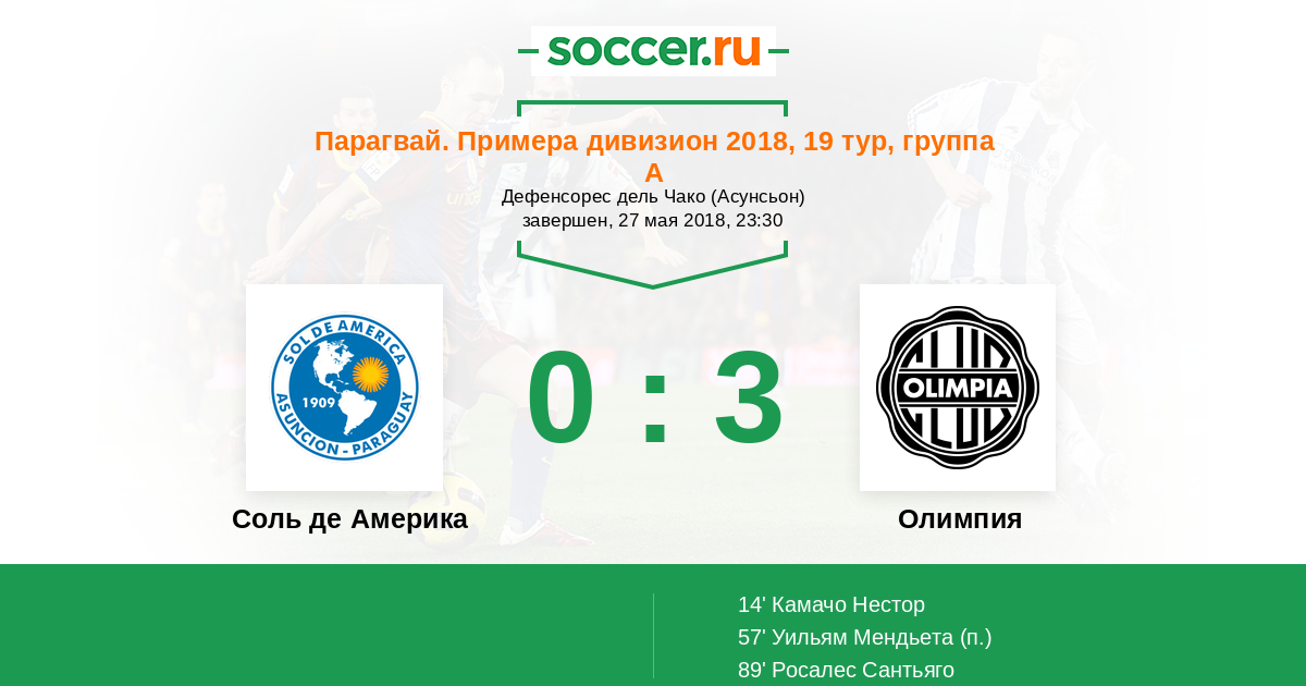 Соль де Америка - Олимпия: обзор матча 27 мая 2018